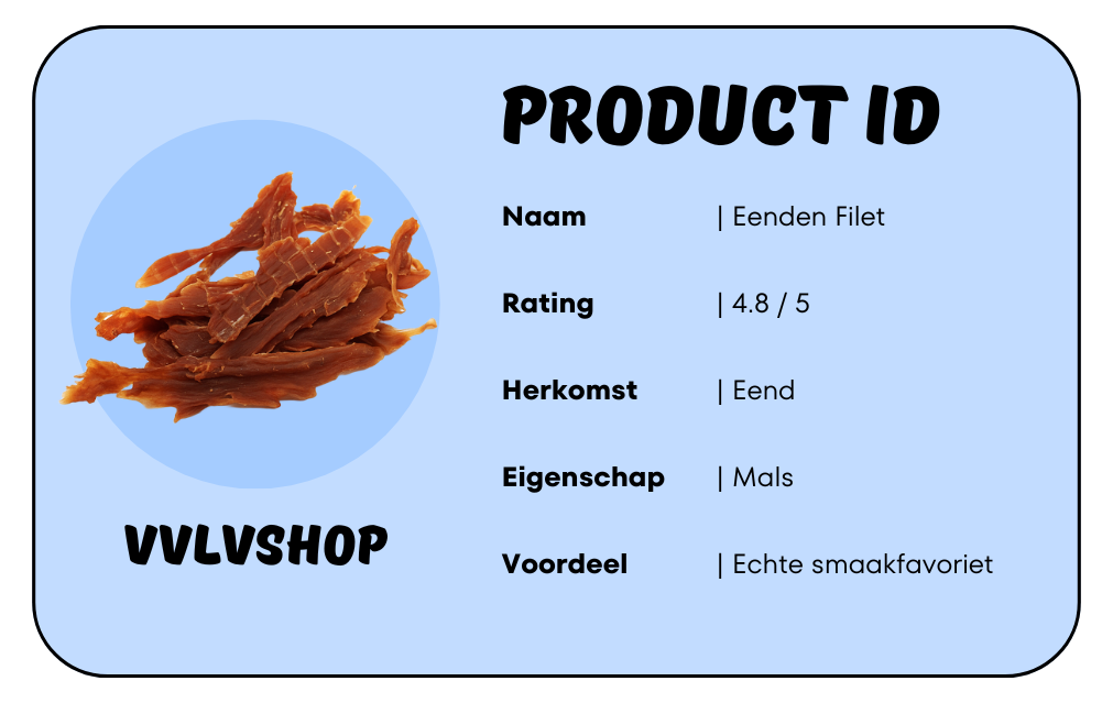 De Eenden Filet is bij mijn eigen honden zonder twijfel favoriet en… dat zegt alles! Deze kleinere, malse reepjes hebben een onweerstaanbare geur en smaak waar honden spontaan voor gaan zitten. Elke filet is gemaakt van hoogwaardig eendenvlees, zorgvuldig bereid zodat alle voedingsstoffen en natuurlijke aroma’s behouden blijven.