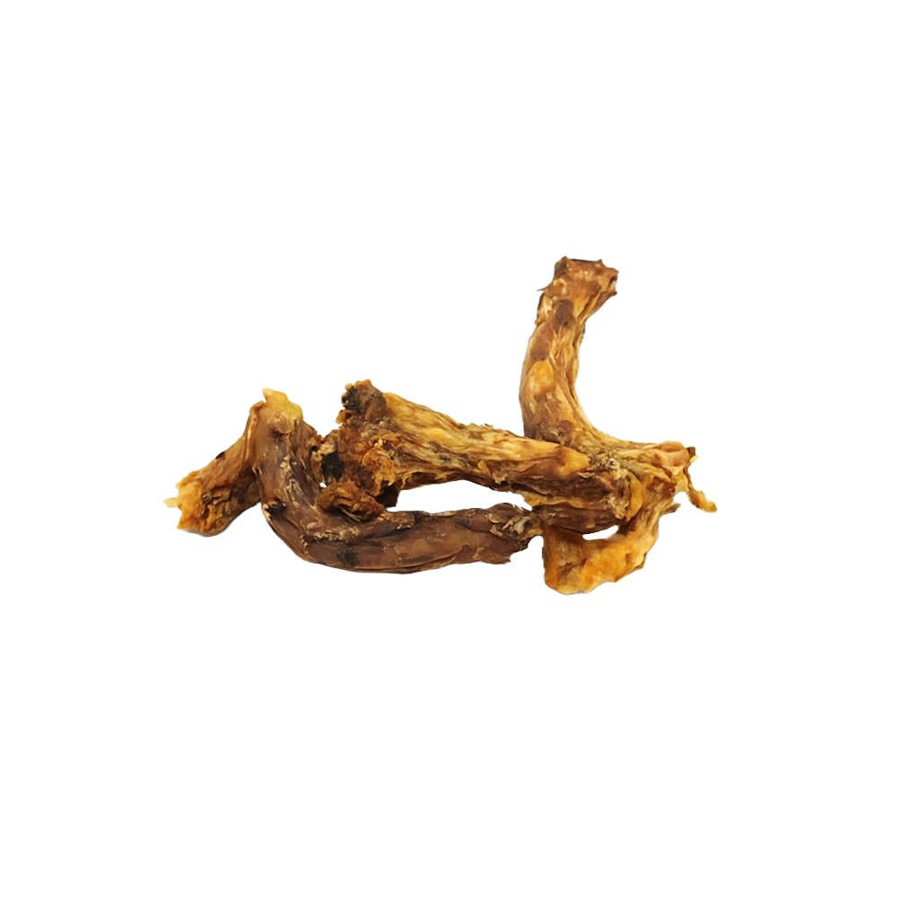 De Kippen Nekken zijn pure, natuurlijke snacks die zorgen voor echt kauwplezier. Deze nekken worden langzaam gedroogd, waardoor ze hun heerlijke smaak en voedingswaarde behouden. Door hun stevige maar niet te harde structuur zijn ze ideaal voor honden van alle leeftijden krokant voor sterke kaken, maar veilig te kauwen voor kleinere rassen.