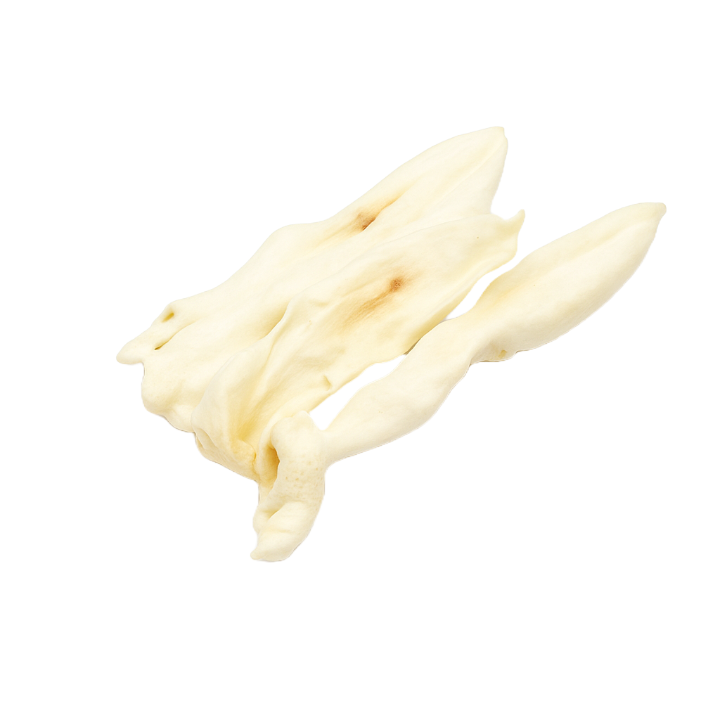 De Konijnen Oren Wit zijn een verfijnde, natuurlijke kauwsnack, mild van geur, zacht van structuur en vol van smaak. Door het zorgvuldige droogproces behouden ze hun voedingswaarde, maar krijgen ze een lichtere, schonere uitstraling. Dat maakt ze bijzonder geschikt voor binnen gebruik én voor honden die gevoelig zijn voor sterk ruikende snacks.
