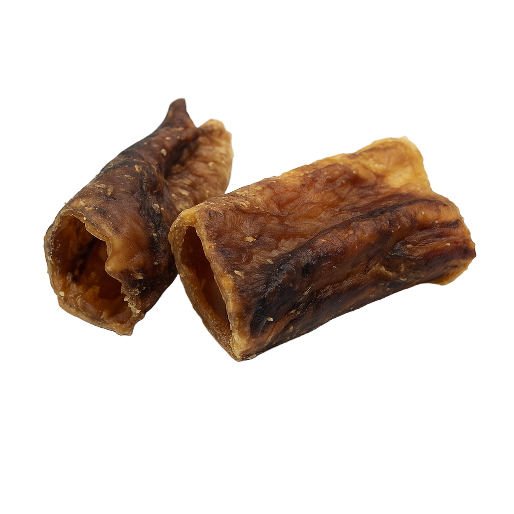 De Paarden Luchtpijp Stukken bestaan uit korte, gedroogde stukken luchtpijp van het paard. Door hun buisvormige structuur geven ze een stevige kauwervaring, terwijl ze licht verteerbaar blijven. De luchtpijp bevat van nature wat kraakbeen, wat bijdraagt aan een gezonde gebitsverzorging.
