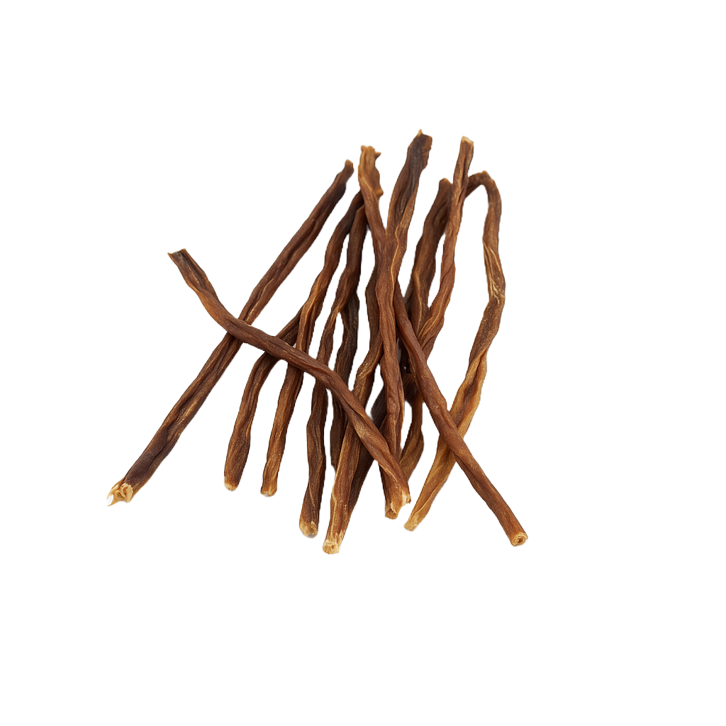 Varkens Spaghetti bestaat uit gedroogde varkensdarmen, verwerkt tot dunne, soepele staafjes. Door het formaat zijn ze ideaal om als tussendoortje te geven of in kleinere stukjes te breken voor training of beloning.